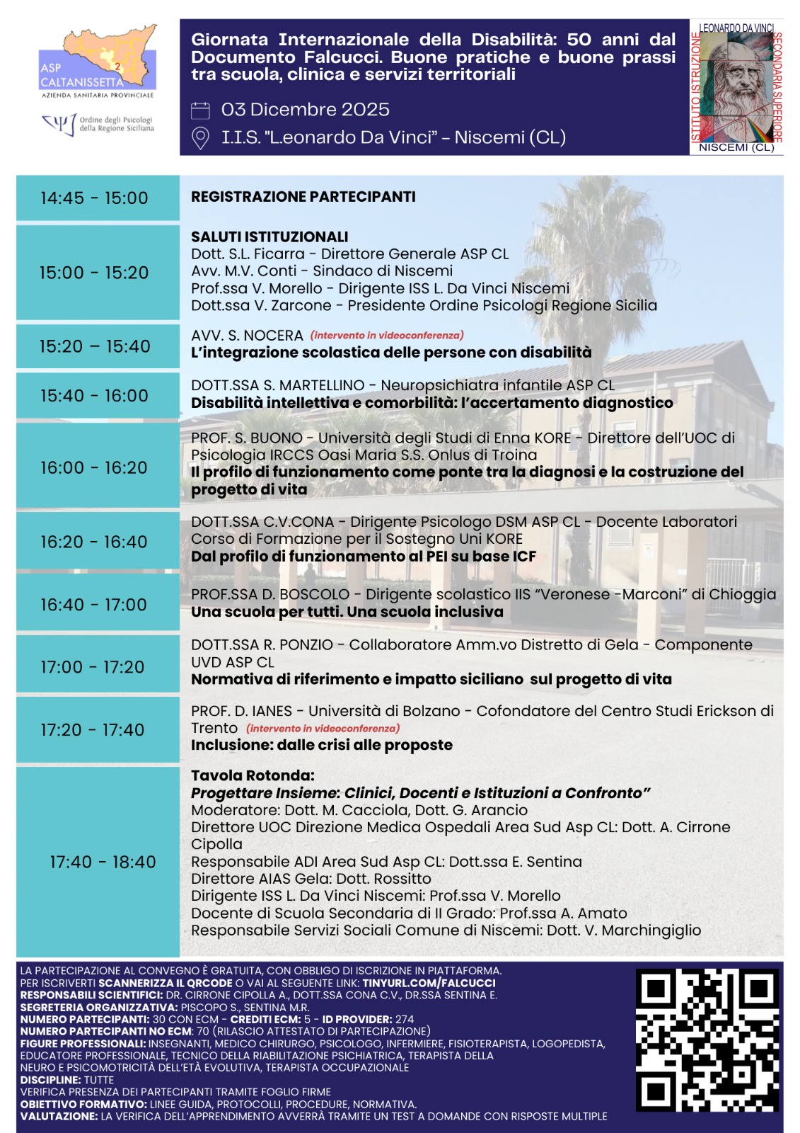 Giornata Internazionale della Disabilità : 50 anni dal documento Falcucci. Buone pratiche e buone prassi tra scuola, clinica e servizi territoriali