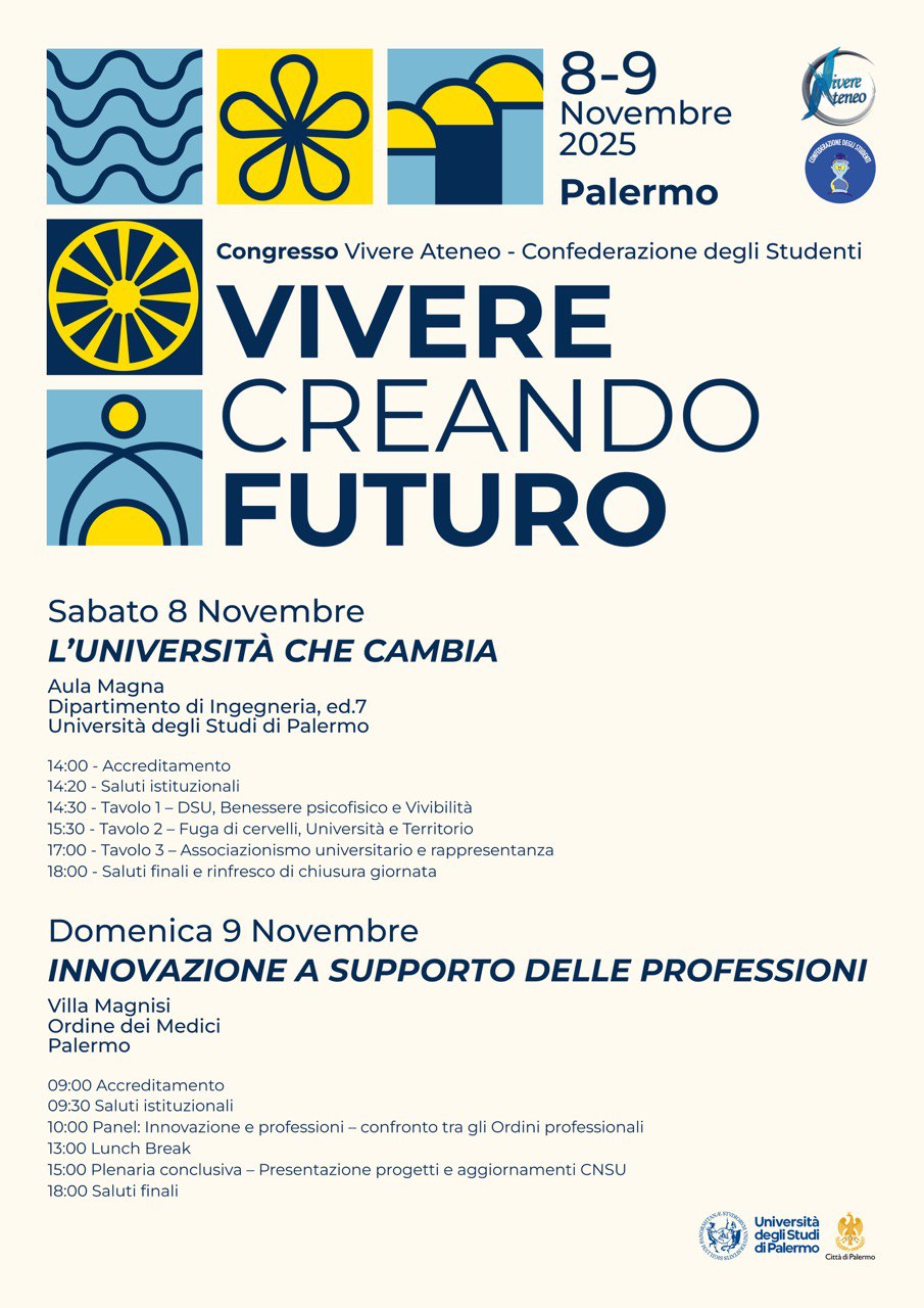 8/11 c/o Aula Magna Dipartimento Ingegneria (ed.7) Università degli Studio di Palermo; 9/11 c/o Villa Magnisi Ordine dei Medici di Palermo